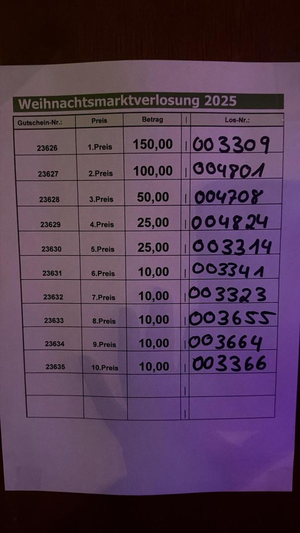Ab 17:15 Uhr Große Weihnachtsmarkt-Verlosung